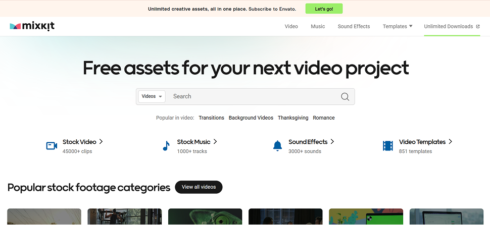 Mixkit is a gem when you need quick, free resources. It offers completely free stock videos, music, sound effects, and some templates for popular editing software.